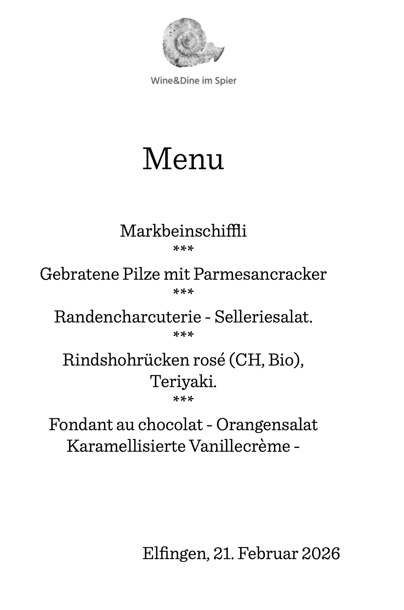 Esthi ist für das Menu zuständig. Das passt. Kostenpunkt 200 Franken inklusive alles. Beginn am 21. Februar um 18.00.